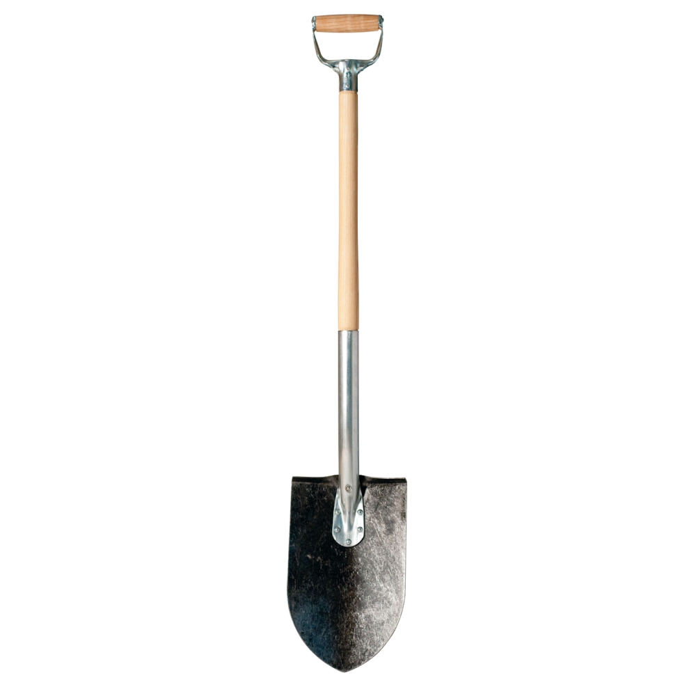 Rejäl grävspade i härdat stål och lackat träskaft.